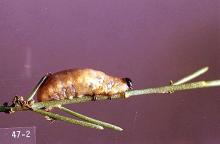 Larvae of lady beetles and predaceous plant bugs may reduce the number of larvae. In British Columbia, a parasitic chalcid wasp is common and may be important in regulating the population.