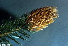 Pest description and crop damage Causes "pineapple" galls on spruce, the primary host.