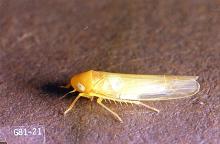 Pest description and crop damage Most commercial caneberry species, and native Rubus species like thimbleberry, are attacked. Adult leafhoppers are slender, yellowish-white, and about 3 mm in length with folded wings. The nymphs are small, pale white, have long antennae, pink to reddish eyes, and move quickly when disturbed. Superficially, they appear similar to whiteflies. Both nymphs and adults feed on the underside of the leaves, causing whitish spots on the upper leaf surface. Heavy infestations cause the leaves to become mottled and, in hot weather, to wither and curl. Large populations can delay or inhibit fruit ripening, and feeding directly on the fruit results in dead or undeveloped drupelets. Also, the insects may deposit honeydew on the fruit, which lowers quality.